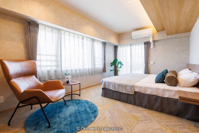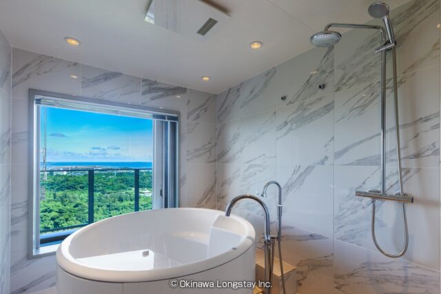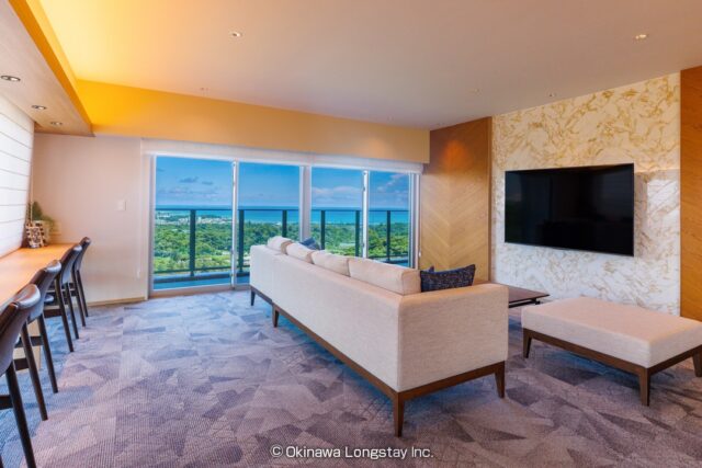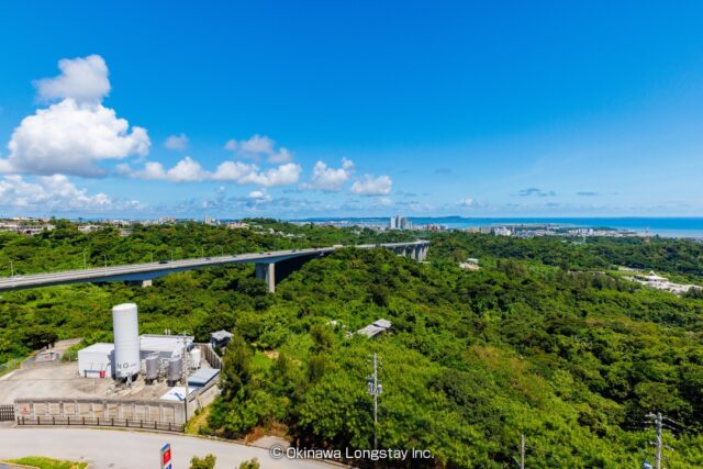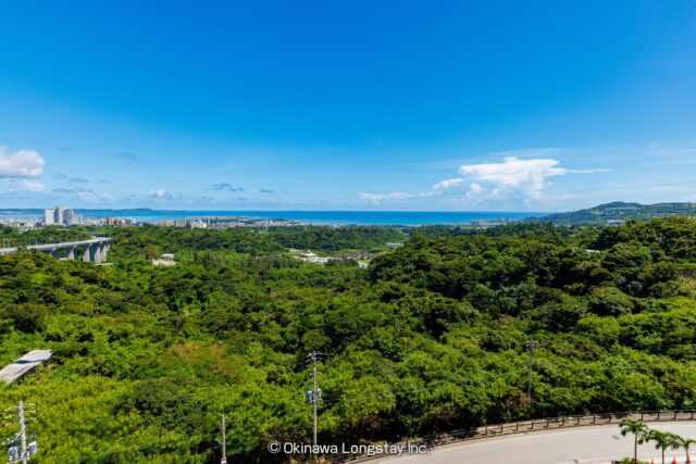 眼下には豊かな緑が広がり、その向こうには穏やかなオーシャンビューが広がります。自然に包まれながらも、都市の利便性を兼ね備えたこの場所は、長期滞在にも理想的な環境です。