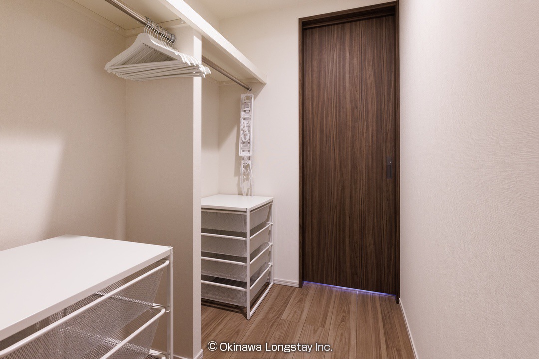 ウォークスルークローゼット → ランドリールーム → 洗面スペース → バスルーム