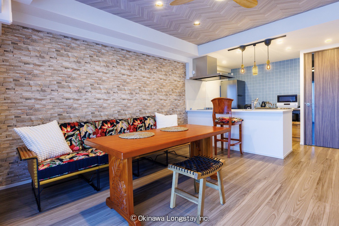 南国リゾートの開放感と、落ち着いたヴィンテージの趣が美しく溶け合う空間。