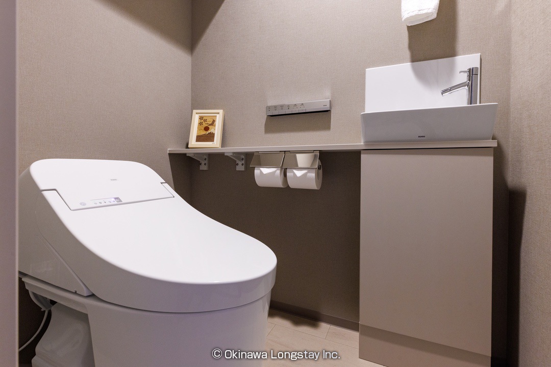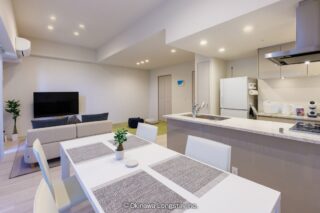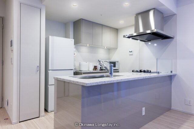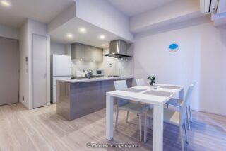 最上階に位置するこちらの2LDKは、白を基調とした清潔感のあるデザインで統一されています。
