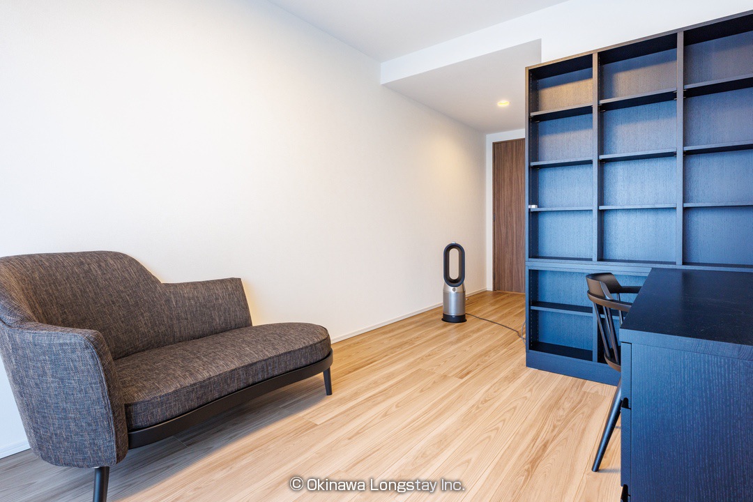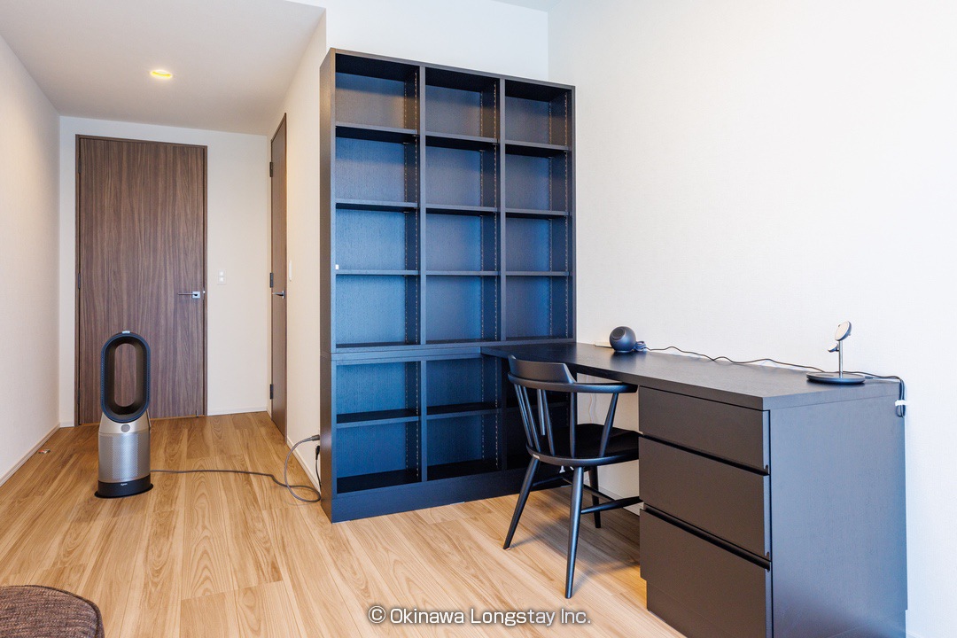 書棚付きのデスクスペースは、読書やテレワークにぴったり。