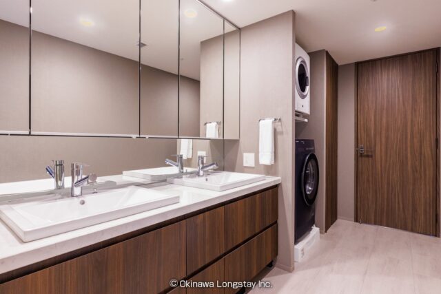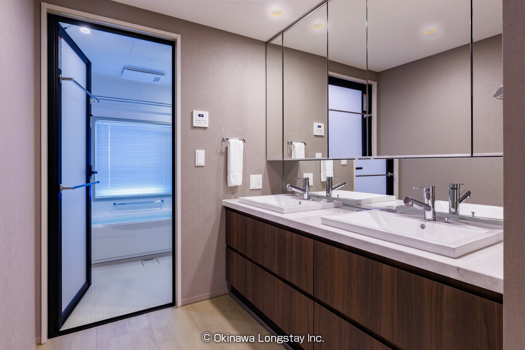 また、洗面室にはダブルボウルの広々とした洗面台を採用し、