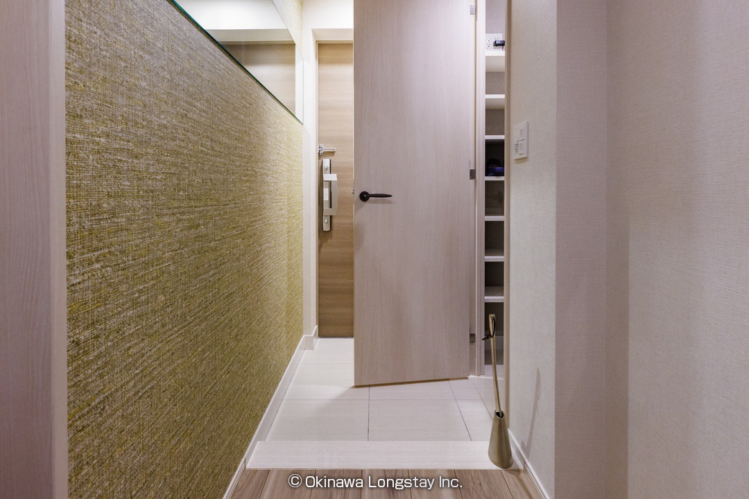 玄関を開けるとまず迎えてくれるのは、落ち着いたトーンの壁クロスが生み出すあたたかく上質な雰囲気。
