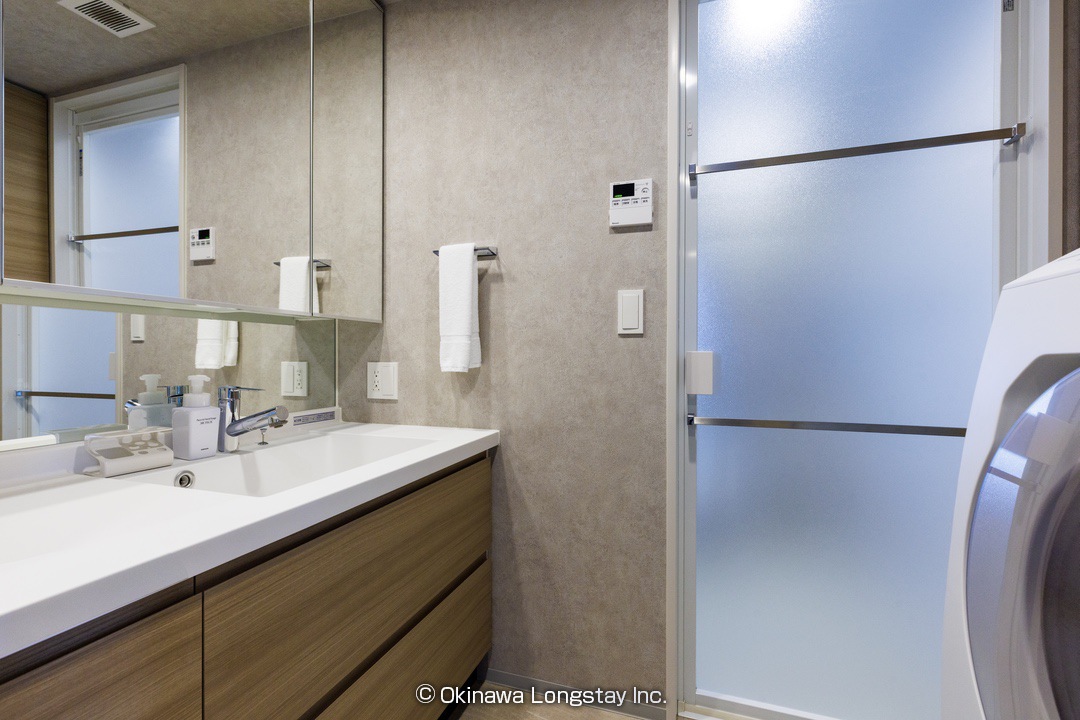 テレビ43インチ(各種ネットサービス対応)、食器、調理器具、大型冷蔵庫、オーブンレンジ、コーヒードリッパー、炊飯器、電気ケトル、食洗機、ドラム式洗濯機、浴室衣類乾燥、スティック掃除機、ヘアードライヤー、アイロン、ウォシュレット、フェィスタオル、バスタオル、バスマット、洗剤等、