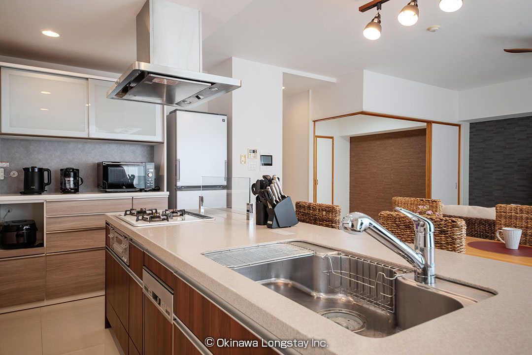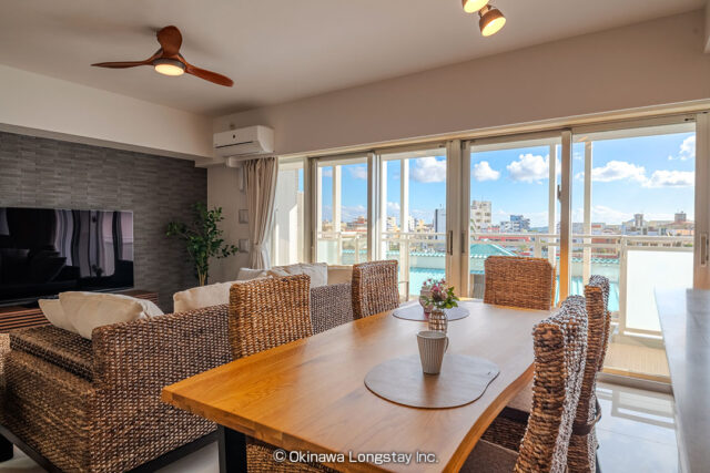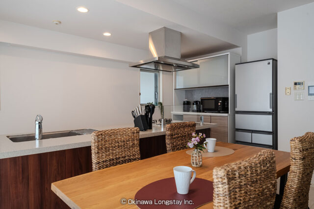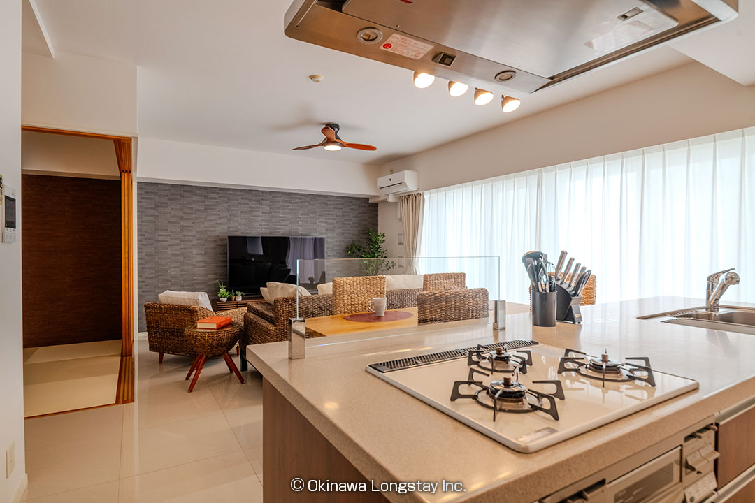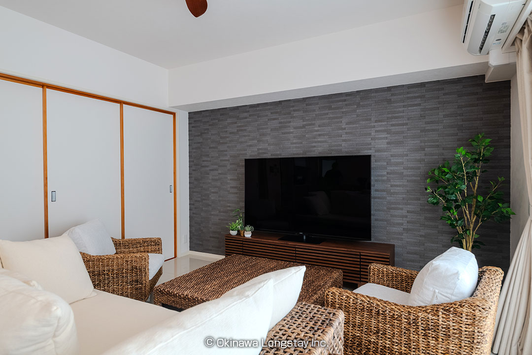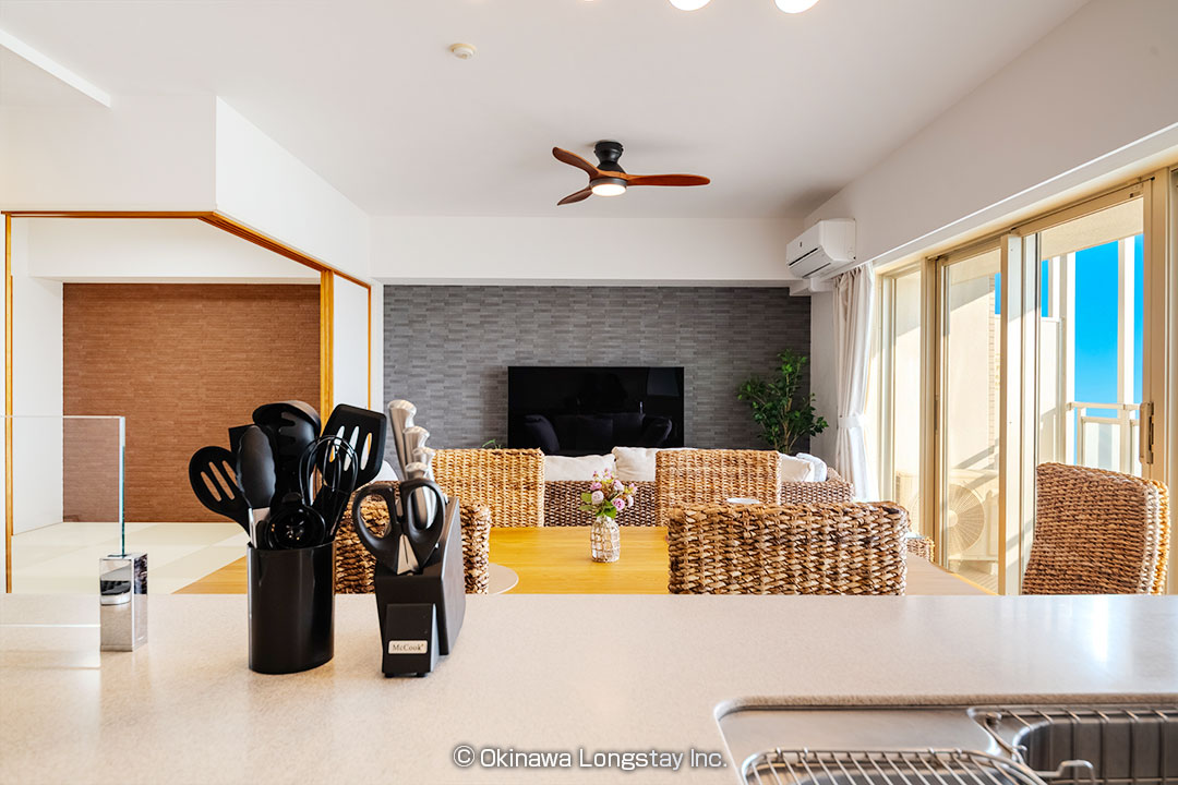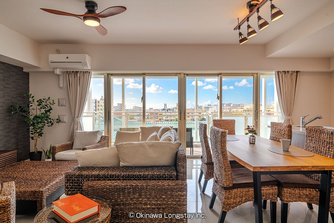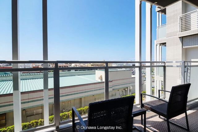 バルコニーに出ると、視界いっぱいに広がる沖縄の空。用意されたチェアに腰をかけて、ただ空を眺める時間。何もしないそのひとときが、この場所では少し特別に感じられます。何気ない一日を、少しだけやさしくしてくれる場所。